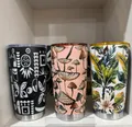 Conjunto com 3 canecas térmicas de viagem, em aço inox com isolamento a vácuo de parede dupla. Mantêm bebidas quentes por horas e frias por muito tempo, mantendo o sabor original. Tampas com vedação segura e bico ergonômico para beber com praticidade. Estampas tropicais: abacaxis, flores azuis e folhas vibrantes, únicas e modernas. Perfeitas para trabalho, viagens, academia ou passeios ao ar livre.